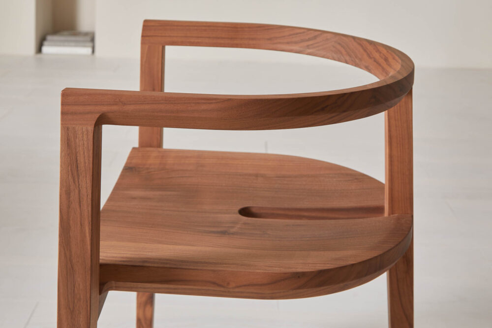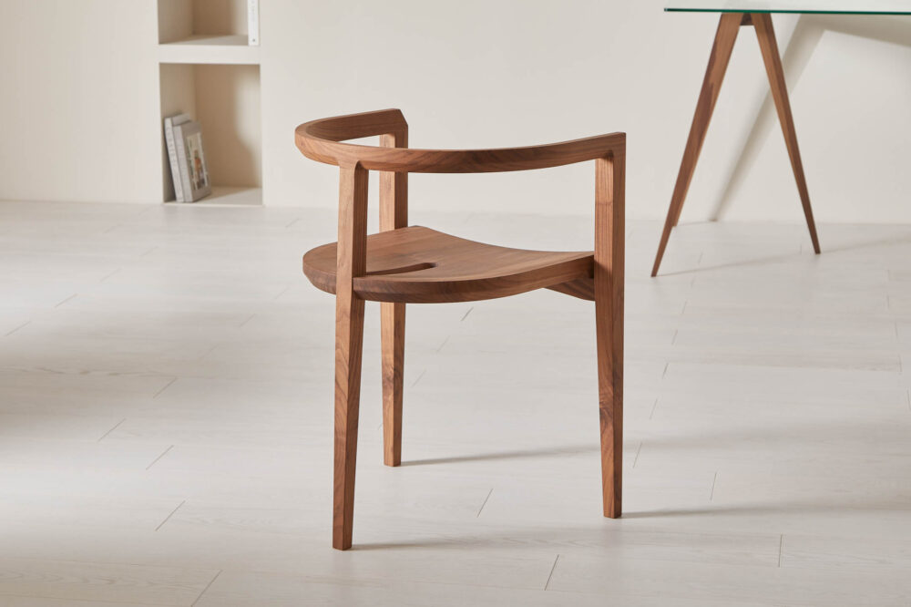 A contemporary wood chair designed for versatility and comfort, this modernist Scandinavian design inspired piece stacks neatly when not in use. The unique tripod design makes it perfect as a dining chair, desk chair, or armchair, providing comfort even during long periods of sitting. Available in oak, walnut, or ebonised ash.